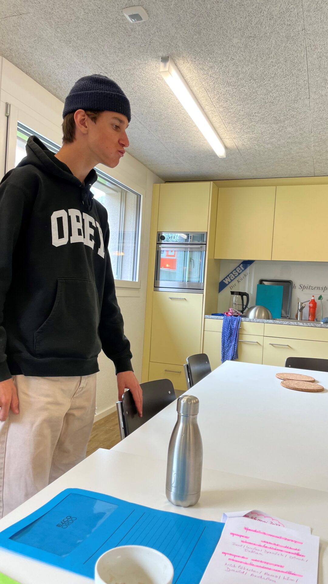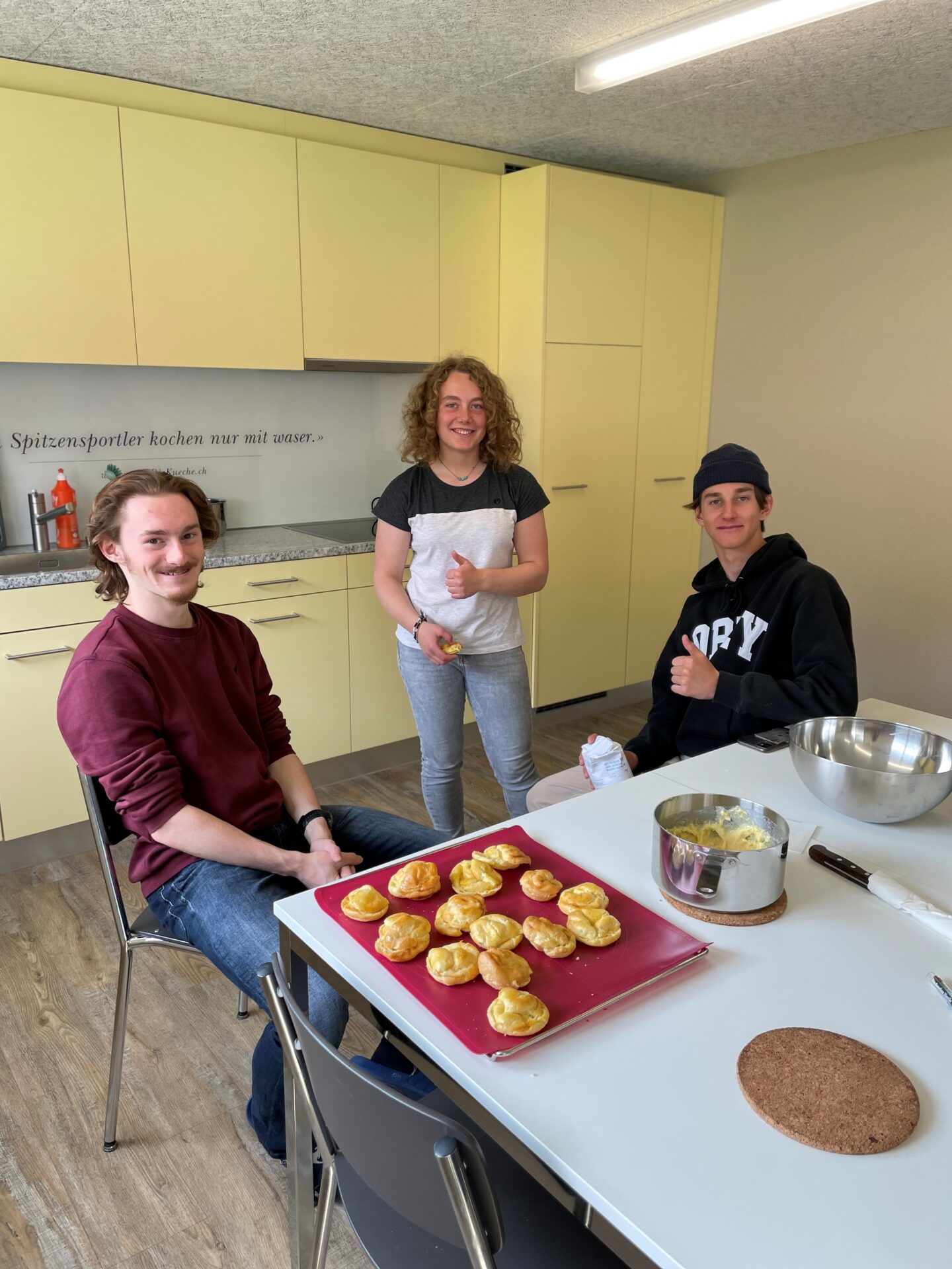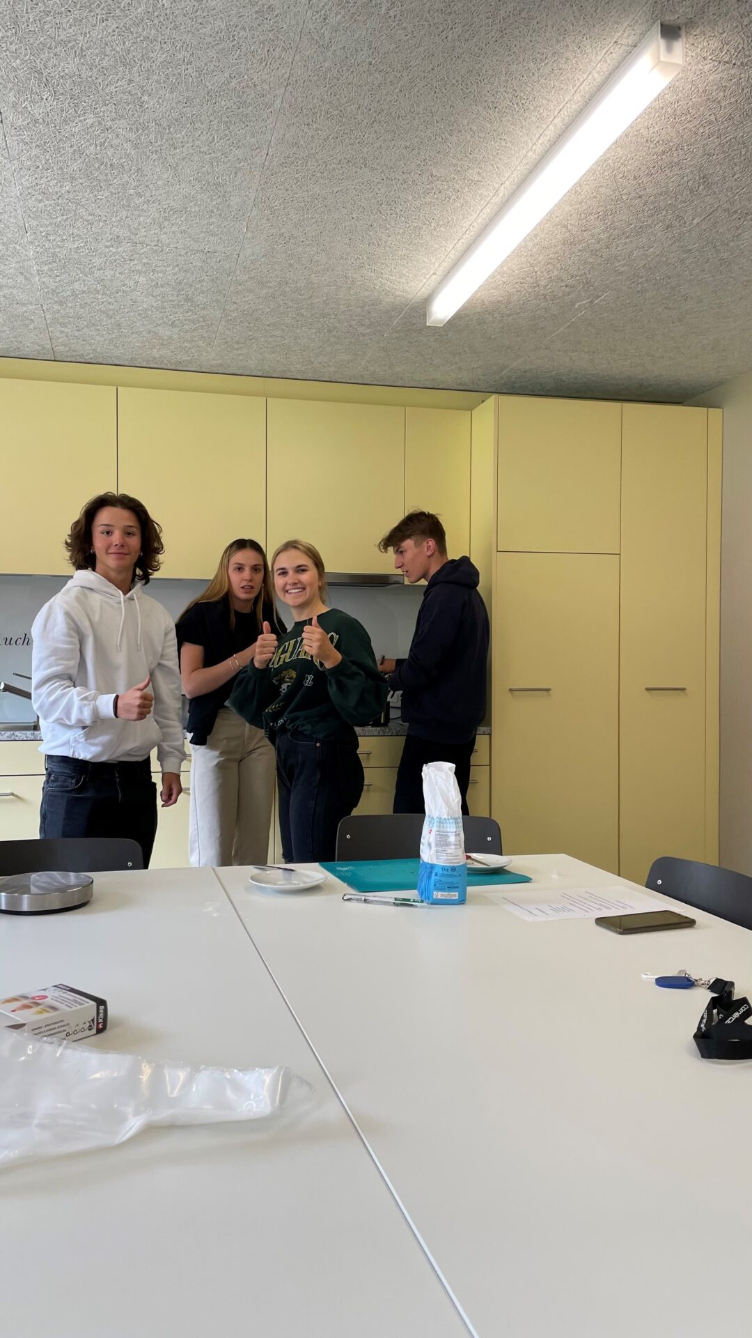 Parallel zur Entwicklung ihrer Projekte nahmen die Studenten an zwei Workshops teil: Sie stellten Gebäck nach den Rezepten in französischer Sprache her (aus ökologischer Sicht), und sie nahmen an einem eher «theoretischen» Workshop teil, der von Esther Um aus Genf moderiert wurde, die zur Verfügung stellte ihnen grundlegende Informationen (auf Französisch) zum Thema der Woche, aber auch Denkanstöße für das Handeln und Reagieren auf die aktuelle ökologische Situation.
