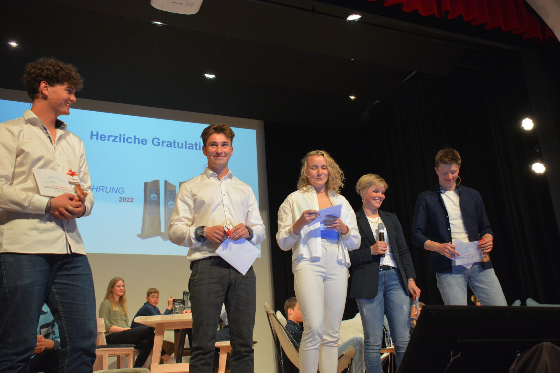 SportEhrung 2022 der Sportmittelschule Engelberg: ein unterhaltsamer Abend zur Ehrung der erfolgreichen Schülerschaft der Sportmittelschule. Herzliche Gratulation den Award-GewinnerInnen: Lenz Hächler (Sportsman of the Year – Ski Alpin), Alex Lotorto (- Freestyle), Nadia Steiger (Sportswoman …-Nordisch) und den Special Award Gewinnern Lean Niederberger (Skisprung) und Fabian Boesch (Freeski) 👏👏👏👏👏
